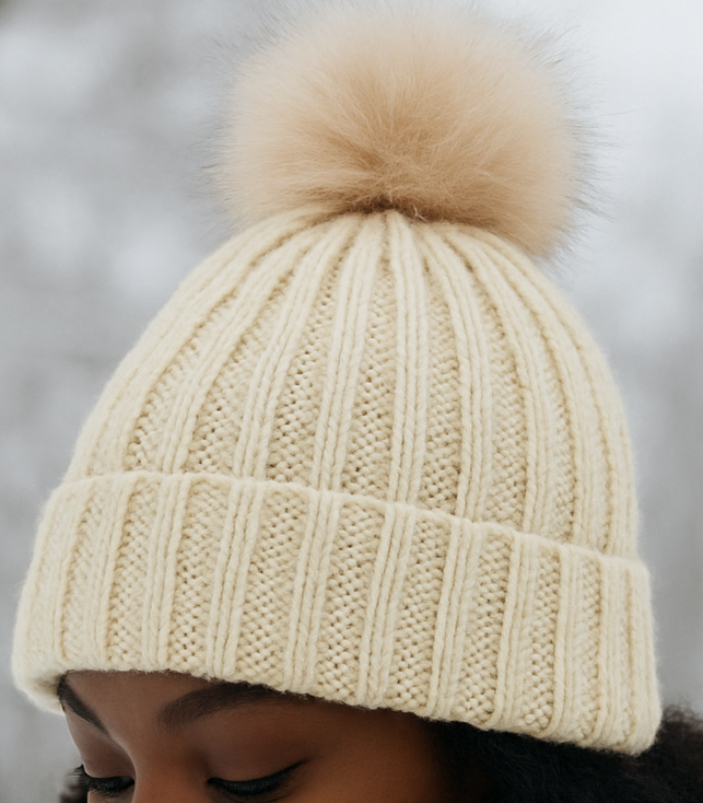 Answer 3: This winter hat is crafted from durable materials that withstand challenging winter conditions, maintaining its texture and appearance over time, ensuring longevity without compromising on luxury.